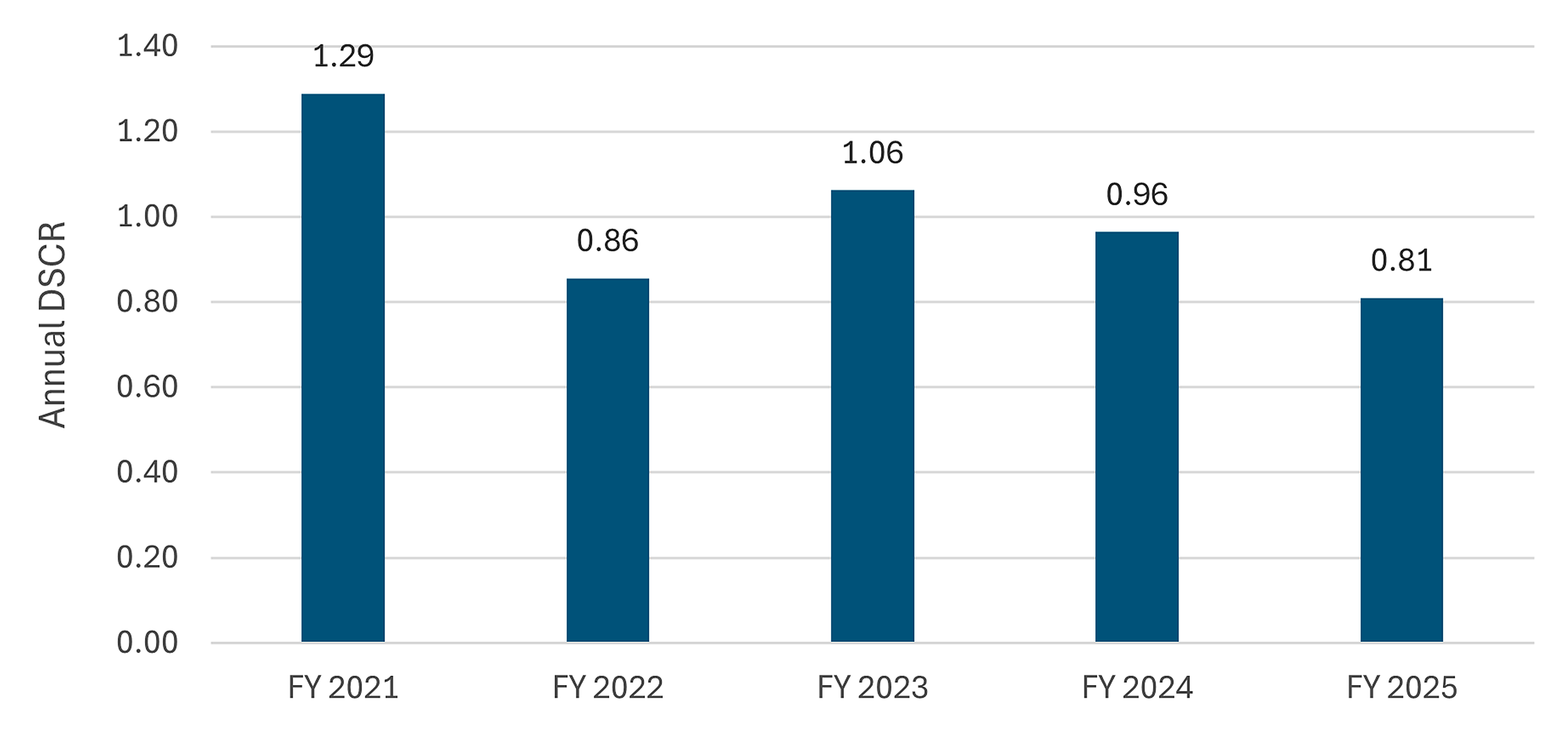 With falling earnings and cash flow, Jack in the Box is poorly positioned to address its debt service each year, as evidenced by a DSCR of less than one in the past two years. Under the JACK on Track plan, the Company has indicated its intention to reduce debt by approximately $300 million over a 12-18 month period. However, achieving this target alone may be insufficient.